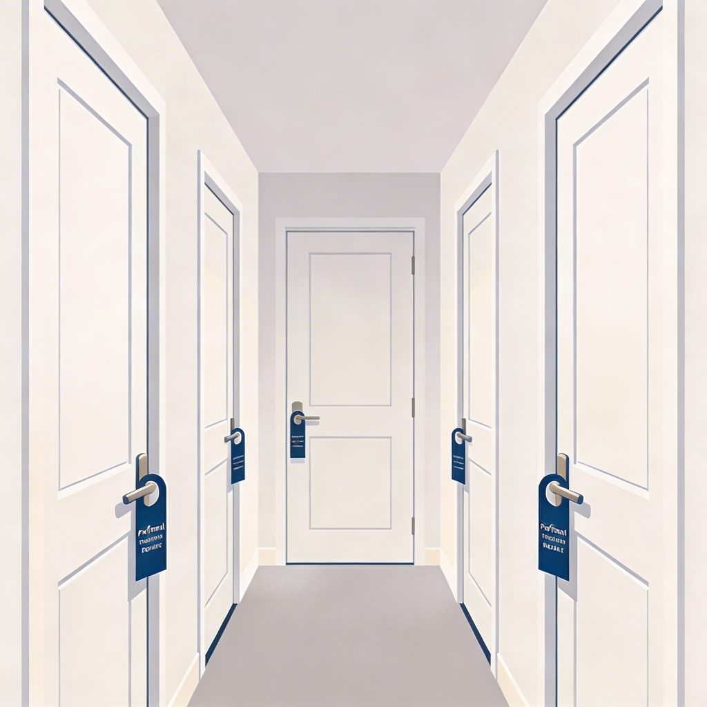 Each room is treated individually using the treatment level selected during booking. A clearly marked notice is placed at each completed doorway with the designated re-entry time.